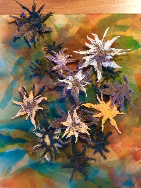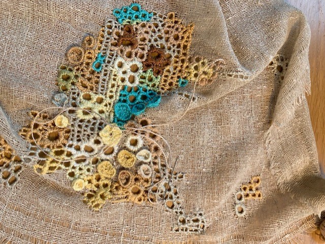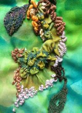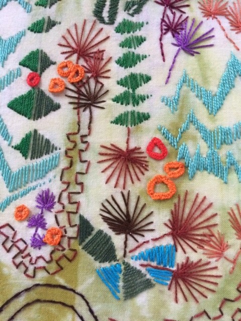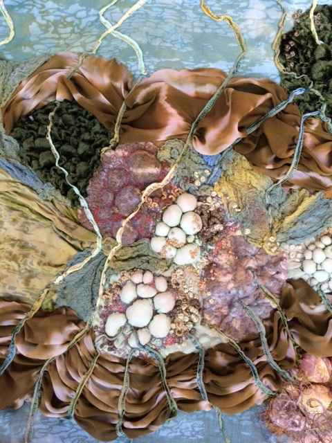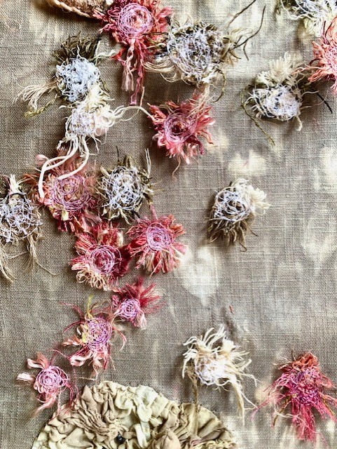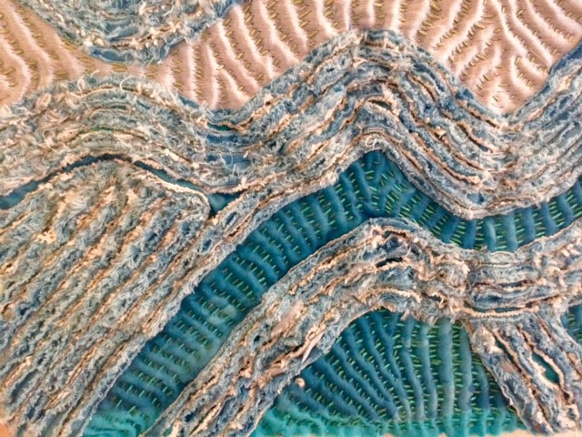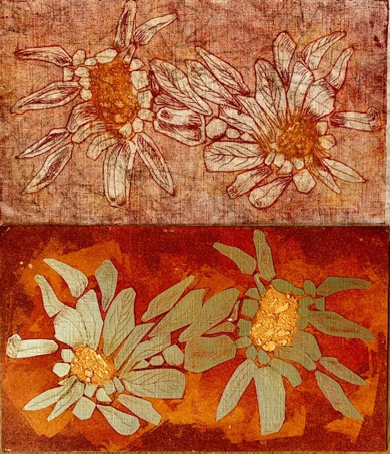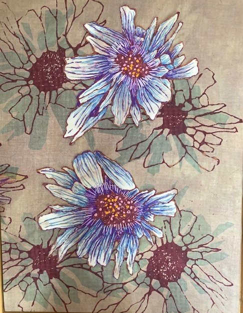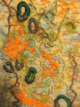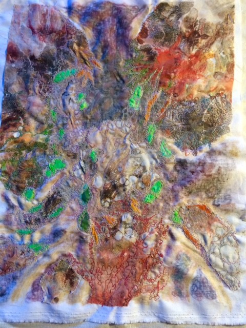 Her love of drawing and photography is often the starting point for her ideas, developing and experimenting with these initial ideas, using a variety of techniques. She is drawn mainly to the natural world and gains inspiration from organic subjects mainly. Printing is a particular technique she enjoys with hand and machine embroidery embellishment.