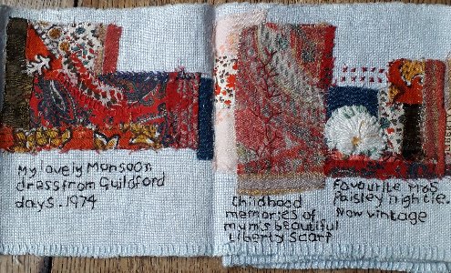 Memories inform my textile work, influencing the materials that I choose to use as well as the ideas and inspirations that gradually develop. I like old, worn fabrics, lawn, silk, threadbare household linens and old fashioned blankets. Recently I’ve added my own ecodyed fabrics to the stash. Fragments of garments, themselves long gone, retain memories and sensations that may date back to childhood and evoke buried sense impressions and emotions. Combining these fabrics and adding others to make new surfaces can be satisfying and pleasing.